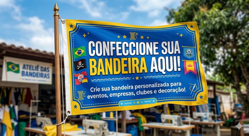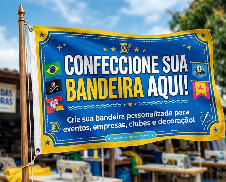 Bandeiras personalizadas produzidas em nossa confecção, com materiais de qualidade e excelente acabamento. Ideais para empresas, eventos e divulgação, garantindo alta visibilidade e durabilidade.